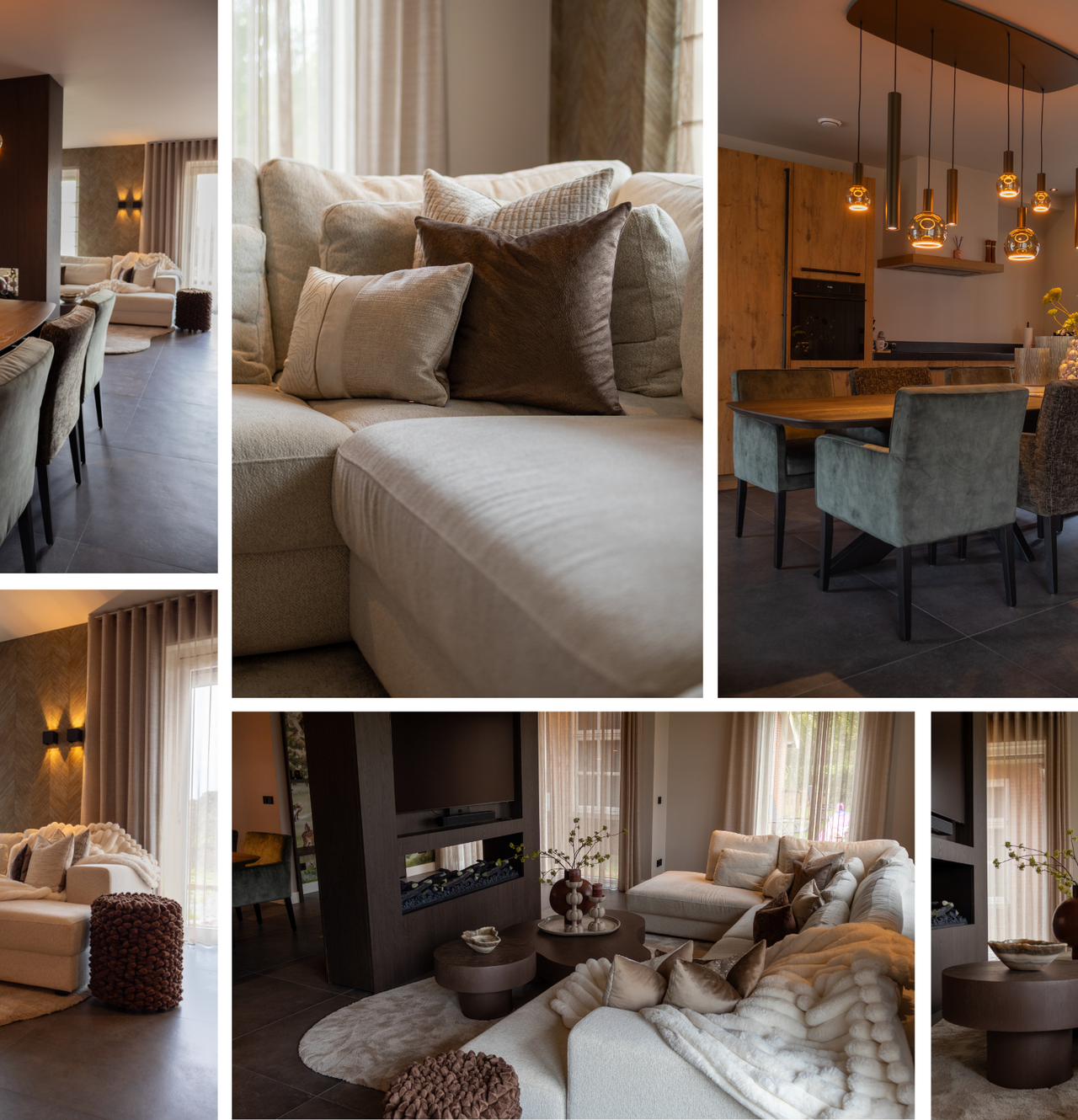 Suchen Sie Inspiration für ein Wohnzimmer und eine Küche, in denen Komfort und Atmosphäre harmonisch zusammenkommen? Werfen Sie einen Blick in dieses Zuhause, in dem die Möbel sorgfältig ausgewählt wurden, um den Alltag noch ein wenig angenehmer zu gestalten. Von einem komfortablen Sofa im Wohnzimmer bis zu stilvollen Esszimmerstühlen und Beleuchtung in der Küche – jeder Bereich lädt dazu ein, Platz zu nehmen, zu genießen und Zeit miteinander zu verbringen.