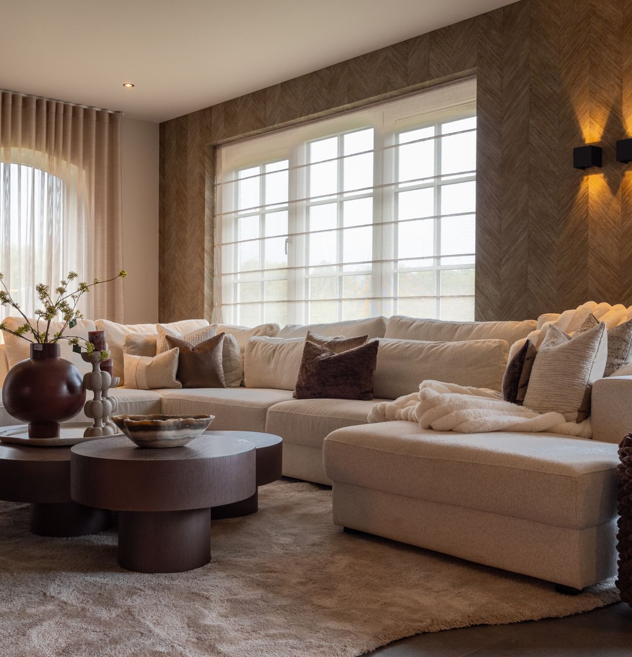Die Stärke dieses Wohnzimmers liegt nicht nur in der Couch, sondern vor allem in der harmonischen Abstimmung. Materialien und Farben sind sorgfältig aufeinander abgestimmt, sodass der Raum Ruhe ausstrahlt. Weiche Stoffe und warme Farbtöne sorgen für ein angenehmes Gleichgewicht und machen die Sitzecke zu einem Ort, an dem Sie gerne zusammenkommen. Möchten Sie sehen, wie dies in Ihrem Zuhause wirken könnte? Unsere Einrichtungsberater beraten Sie gerne.